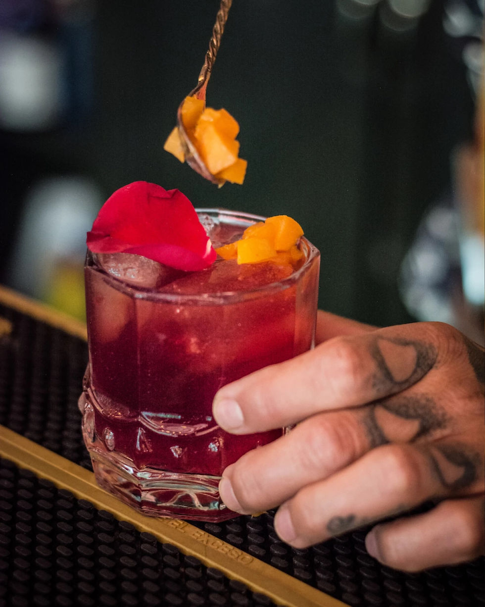 Después, debes verter todos los ingredientes en un vaso old fashioned y agitar.