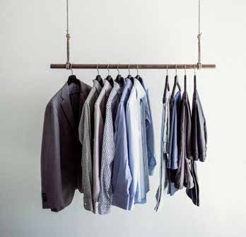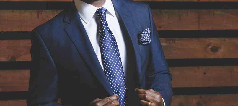 En redes sociales como Pinterest encontrarás tips y conse- jos útiles para combinar ropa y crear opciones muy diversas con pocas piezas. Trajes Debes tener varios, pues es la prenda esencial, y no es recomendable usar el mismo más de dos días seguidos. La regla de oro es tener uno azul marino, uno negro y uno gris oxford, porque puedes usarlos para ir a trabajar y en casi cualquier evento; además, pueden combinarse con diferentes camisas y corbatas para dar un toque diferente cada vez. Dependiendo de tu ambiente de trabajo, puedes usarlos sin corbata. Asegúrate de esto.